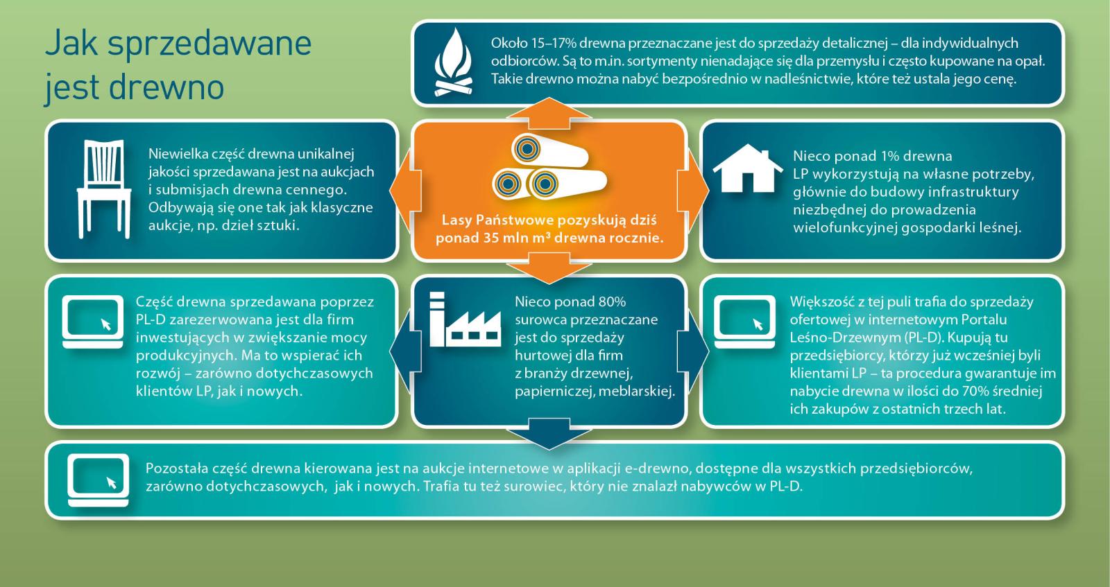 In den letzten Jahren erhöhten die Staatsforste das Verkaufsvolumen an Brennholz um einen Drittel bis auf über 4 Mio. Kubikmeter jährlich. Das Brennholz ist nicht nur die ökologischste Wärmequelle, sondern auch im Hinblick auf das Verhältnis Preis zum Heizwert attraktiver als Kohle, Heizöl, Gas oder elektrische Energie. Manche Kunden wählen ofenfertiges Stückholz, andere arbeiten das Holz direkt im Wald auf, nachdem sie die notwendigen Abstimmungen getroffen, die Arbeitssicherheitsmaßnahmen erfüllt und das Holz bezahlt haben. Dies betrifft oft das Brennreisig, das relativ billig ist und von Menschen in ländlichen Gebiete bevorzugt wird.